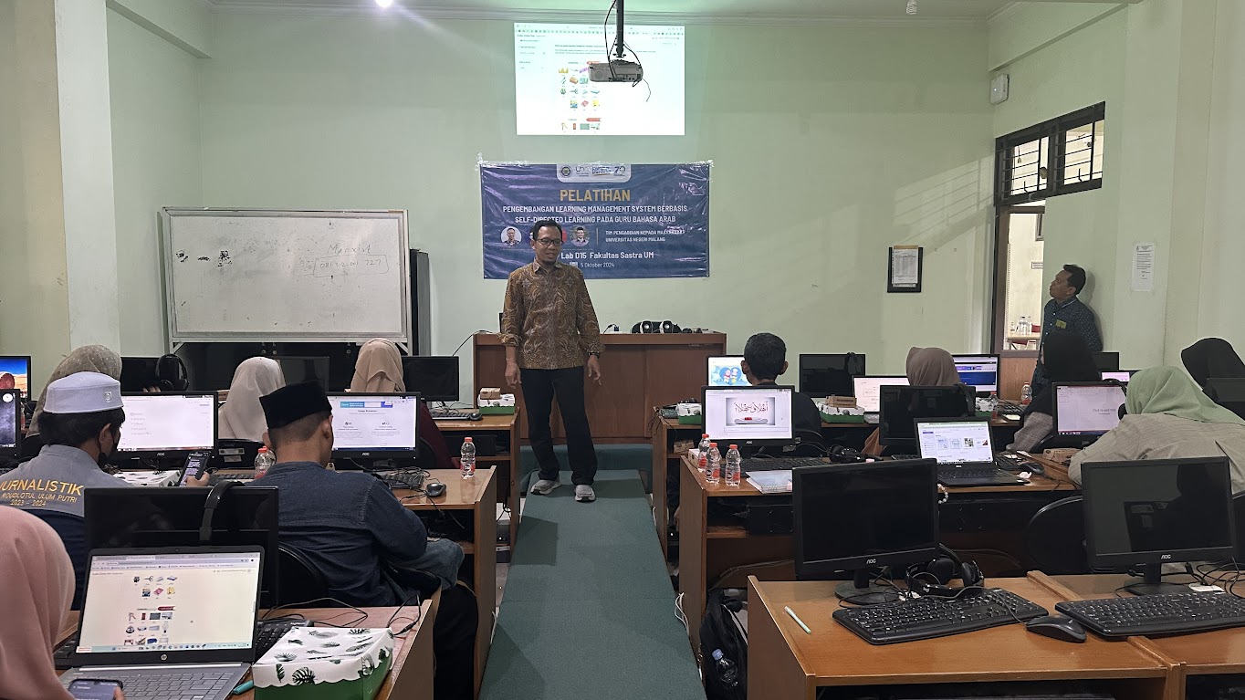 Malang, 5 Oktober 2024 – Universitas Negeri Malang (UM) menyelenggarakan pelatihan bertajuk “Peningkatan Kualitas Guru Bahasa Arab melalui Pengembangan Learning Management System (LMS) Berbasis Self-Directed Learning” untuk guru-guru bahasa Arab di Malang Raya. Kegiatan ini merupakan bagian dari upaya UM untuk membekali para pendidik dengan keterampilan teknologi terkini, sehingga mereka dapat mengoptimalkan pembelajaran bahasa Arab di sekolah-sekolah.